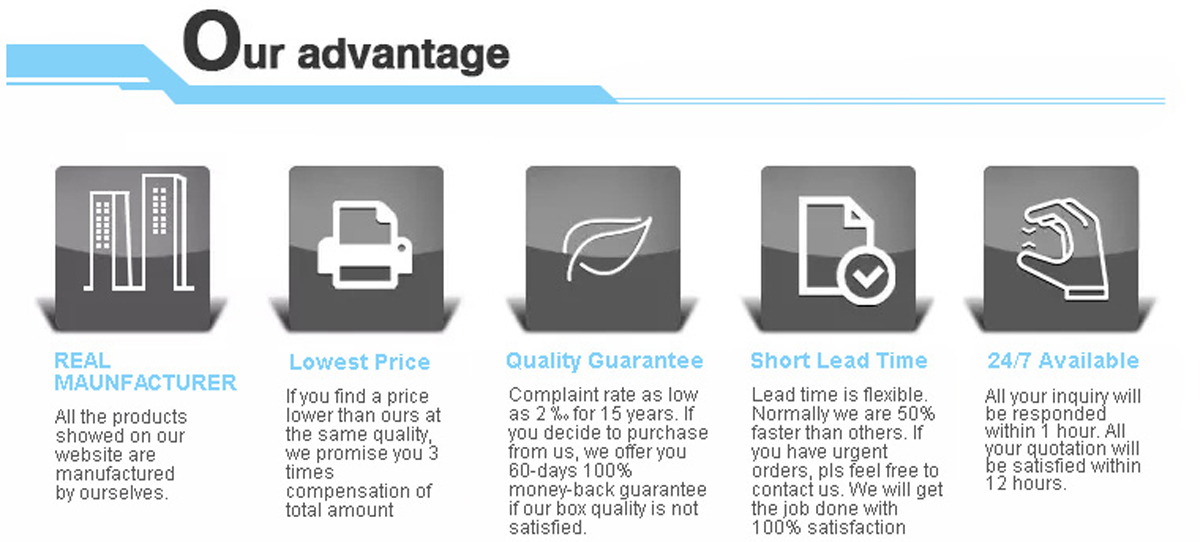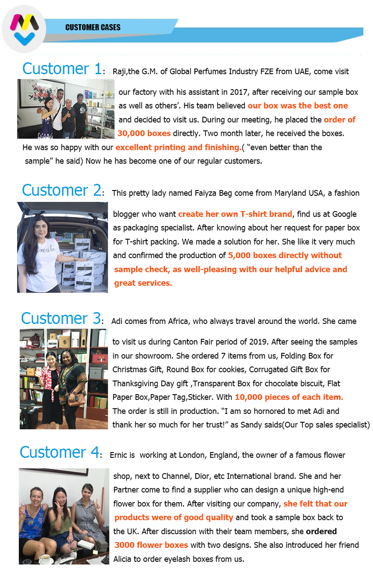 ¡Quedarse satisfecho con nuestro embalaje es nuestra expectativa! La satisfacción y el reconocimiento del cliente son nuestra mejor evaluación. Basándonos en nuestra sinceridad, profesionalismo y enfoque en la calidad, nos esforzamos por ofrecer más productos de embalaje de alta calidad fabricados en China a nuestros clientes en el extranjero, maximizando así el valor de sus productos.