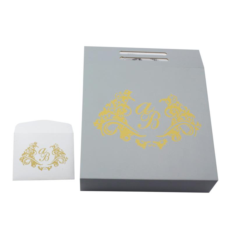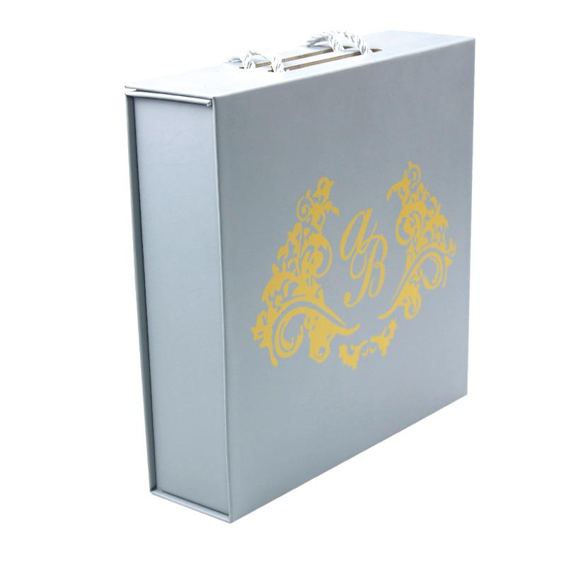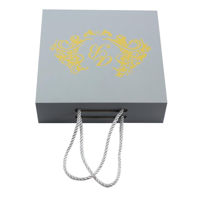 Este es un cajas de cartón planas Con asa, diseño muy personalizado, caja de regalo fácil de llevar.