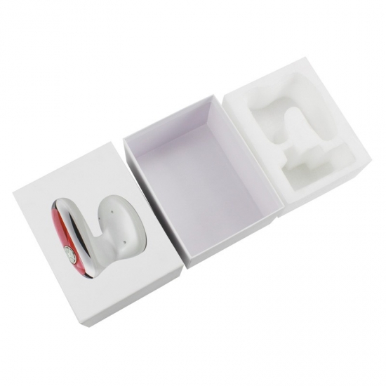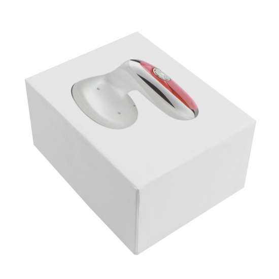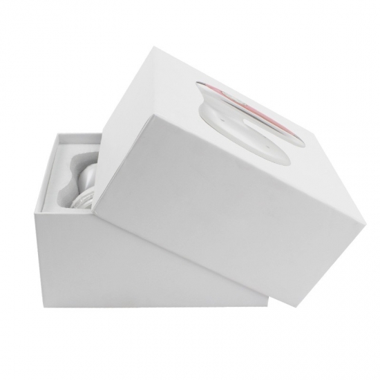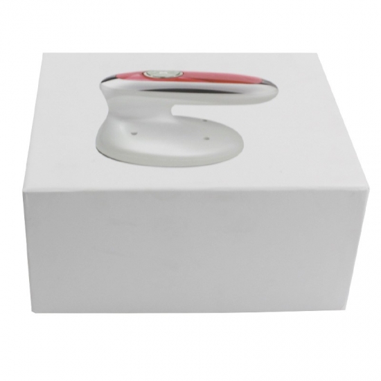 Esta caja lleva impreso el logotipo de un instrumento cosmético electrónico. Muestra los productos directamente a sus clientes. Su inserto de EVA protege el instrumento de vibraciones y golpes. Mide 34 x 24 x 10 cm.