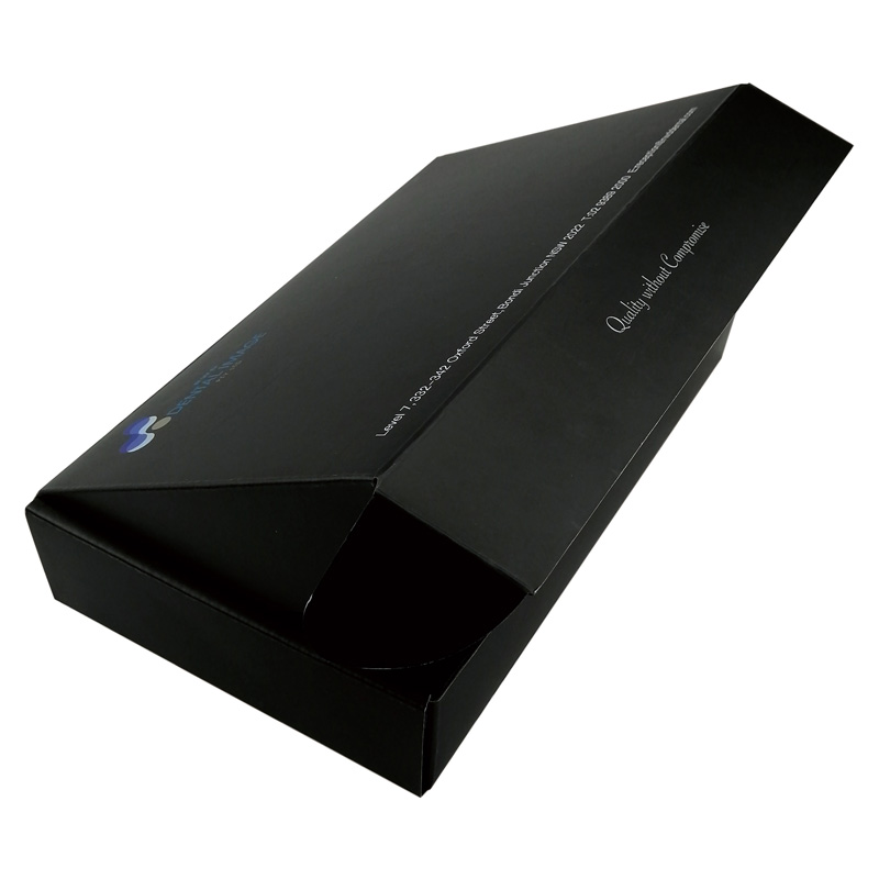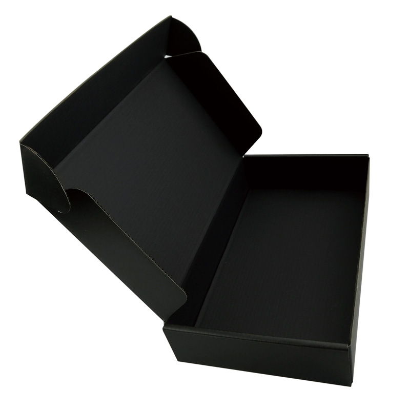 Este es un cajas de cartón vacías para correo que está hecho con papel negro + flauta BE + 300 g de CCNB ,lleno de impresión negra fuera de la caja con texto corto en la esquina, cubierta interior con papel negro normal.