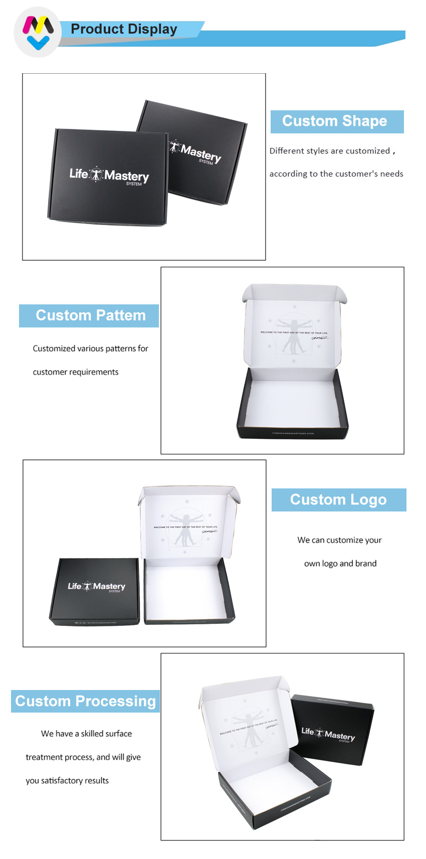 Normally 15-20 days after design/sampleCajas de correo postal con logotipo personalizado impreso a página completa en negro