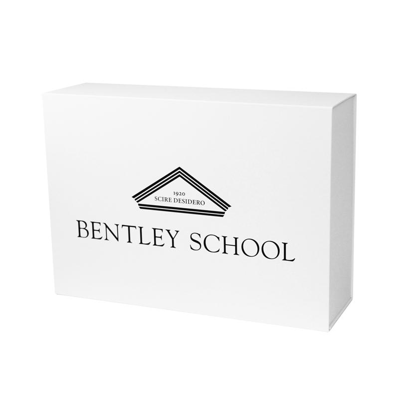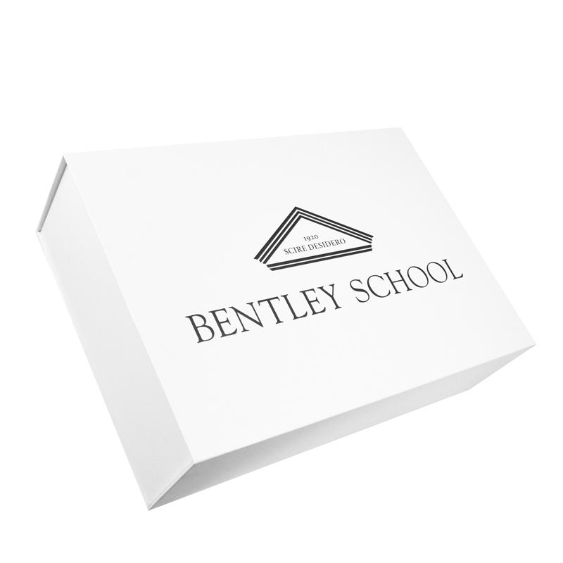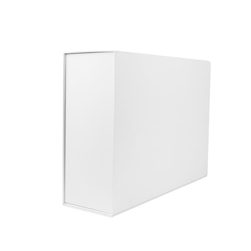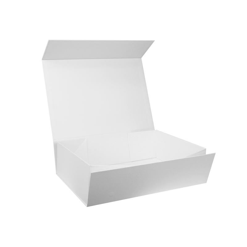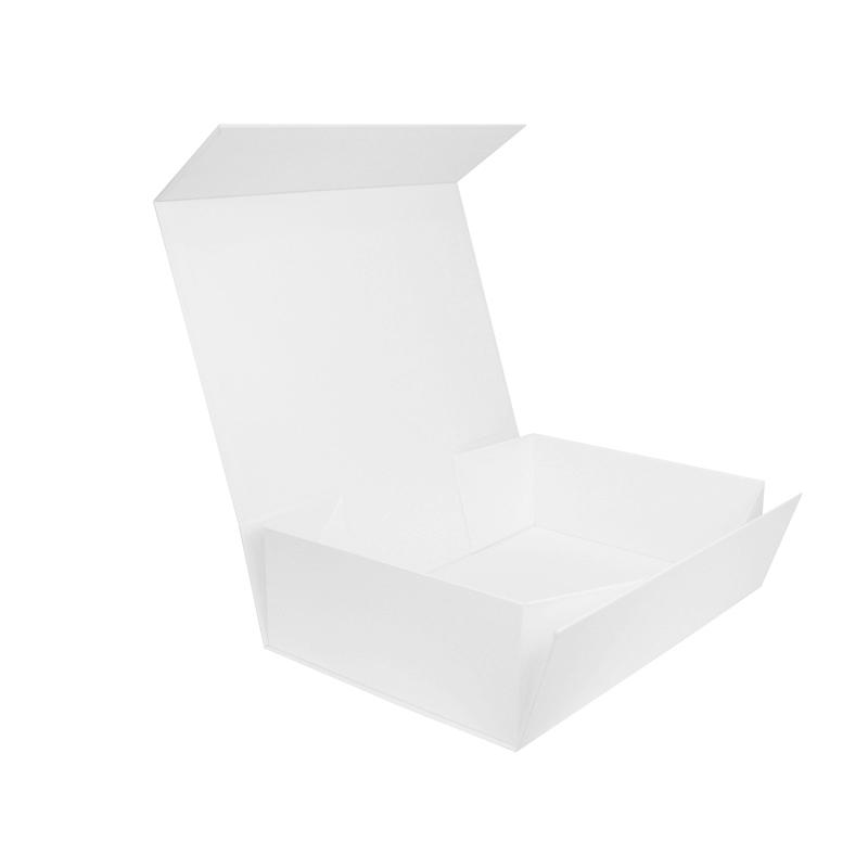 Caja de regalo blanca mate con logotipo personalizado impreso en negro, adecuada para todo tipo de embalaje de regalo premium.