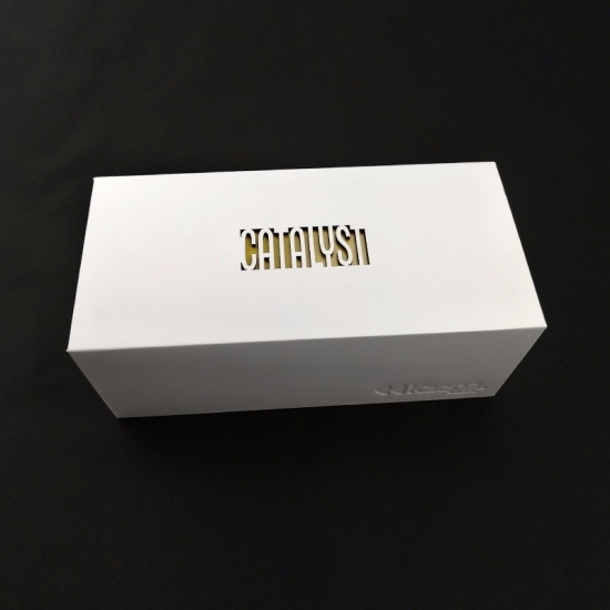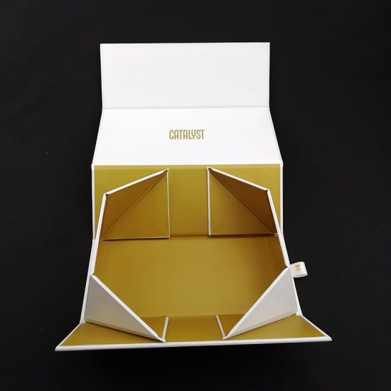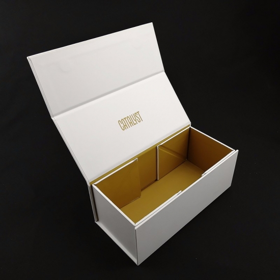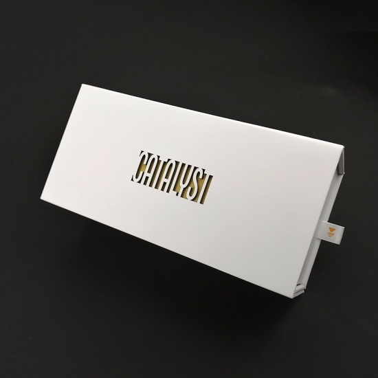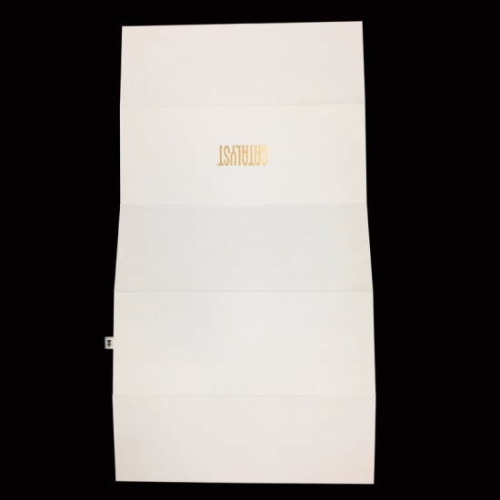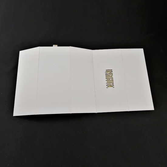 Fabricado con papel especial + cartón gris de 2 mm, exterior sin impresión, interior con impresión completa a todo color y logotipo grabado en relieve, estampado en caliente dorado.