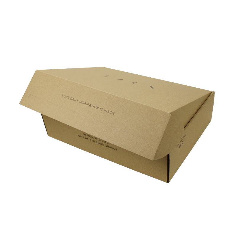 Este es un Cajas de envío para comercio electrónico Fabricada en papel ondulado resistente de 3 capas, con el logotipo de la empresa impreso y otra información en negro. Es una opción más económica que la impresión CMYK. La caja se puede personalizar con cualquier color y con diferentes acabados. Para más opciones de colores, consulte nuestra lista de productos. caja de correo corrugada .