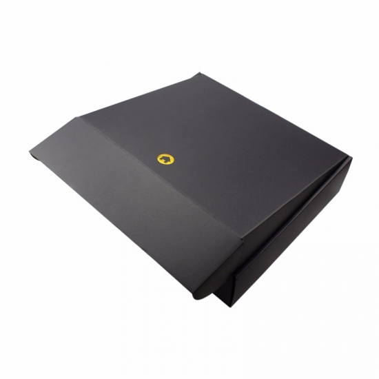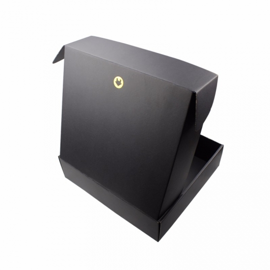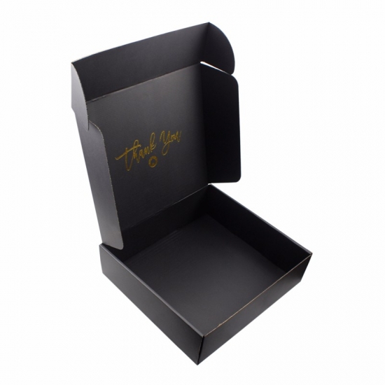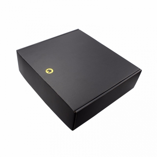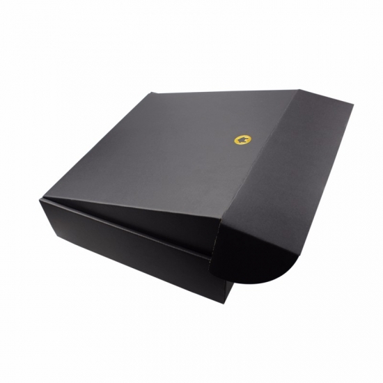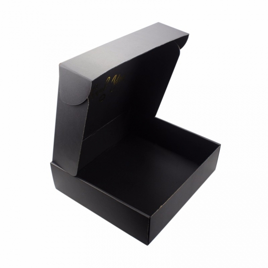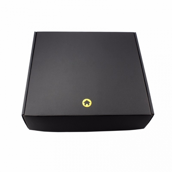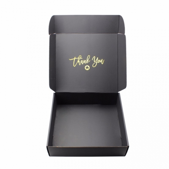 Este es un buzones de correo negros que fue fabricado por BE flute+ papel negro Sin impresión, el logotipo está estampado en papel dorado en la parte superior de la tapa, lo que le da un aspecto excepcional y agradable.