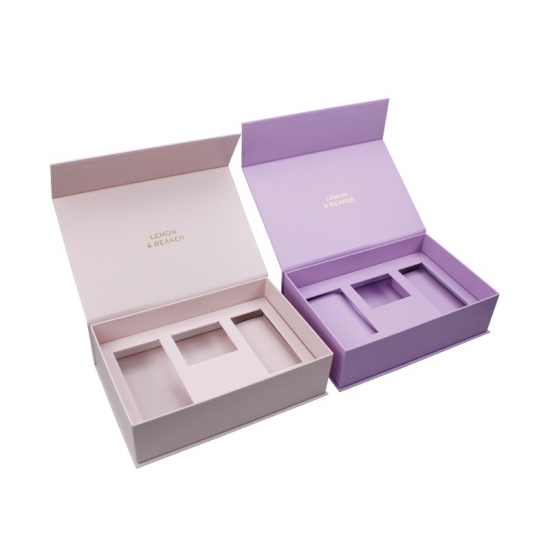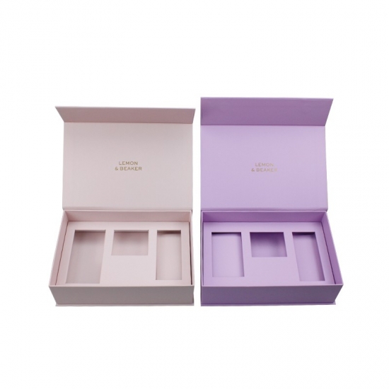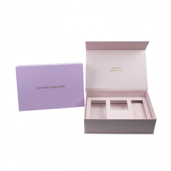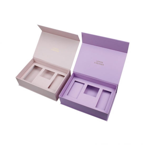 Esta es una caja de regalo rosa con forma de libro de concha con inserto de cartón, hecha con papel de arte C2S de 157 g + cartón gris de 1200 g, acabado mate, LOGOTIPO estampado en lámina de oro, El tamaño y la forma del inserto se pueden personalizar según la solicitud del cliente.