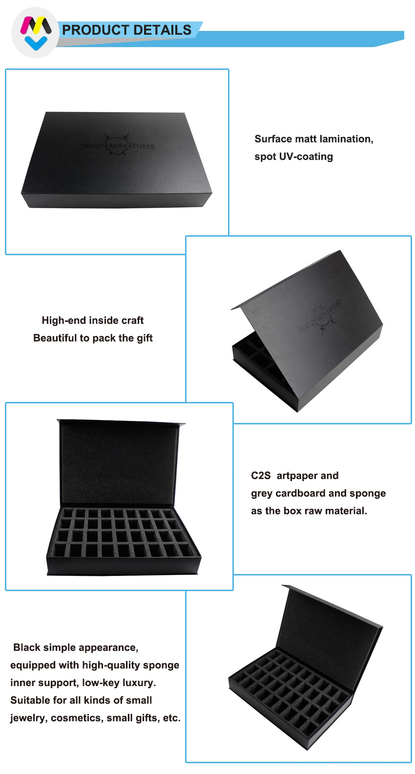 Venta al por mayor profesional personalizada de alta gama negra caja con tapa magnética