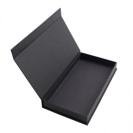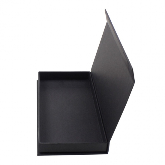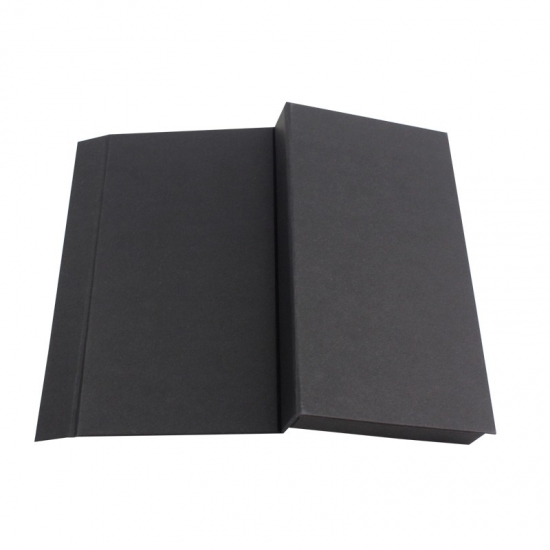 Caja negra pequeña con tapa abatible magnética, con forma de libro, que acepta logotipos personalizados, patrones impresos, etc. Se utiliza para embalaje interno, es económica y ecológica, reutilizable.
