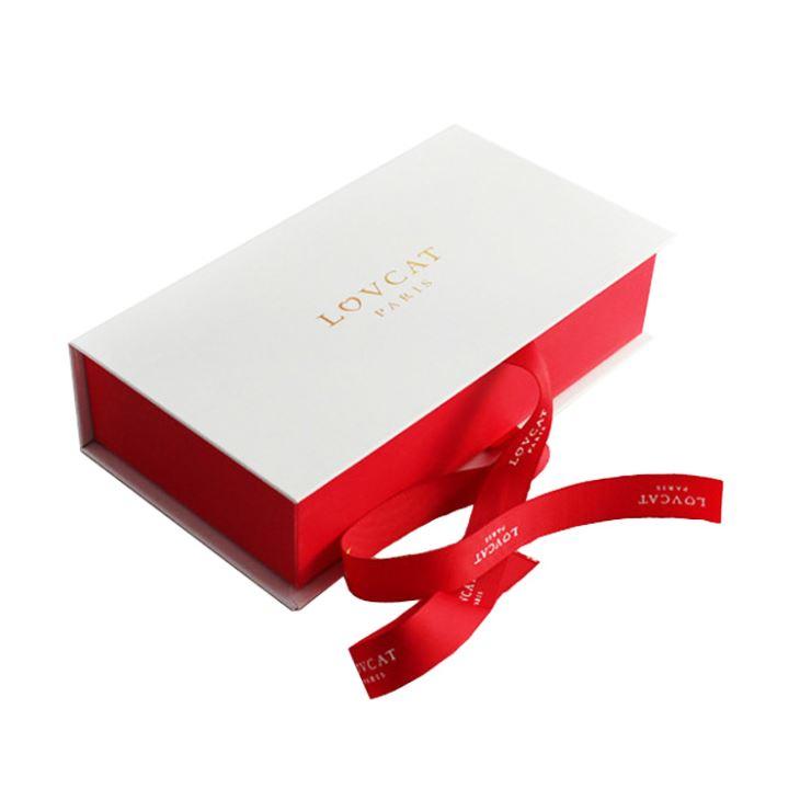 Acabado de la caja: Estampado en caliente con lámina dorada para el LOGOTIPO en la tapa superior, impresión interior totalmente roja, laminado mate