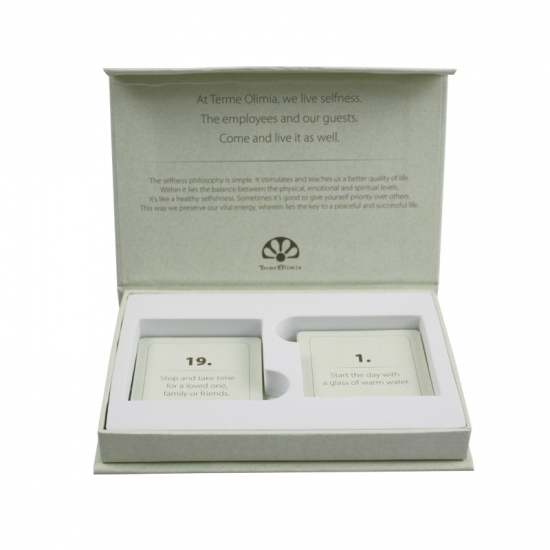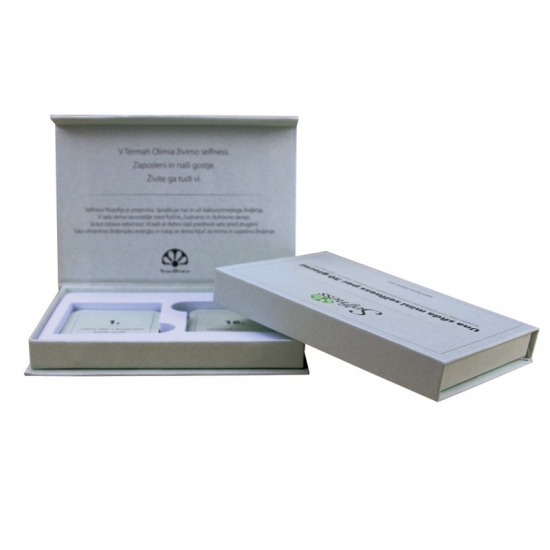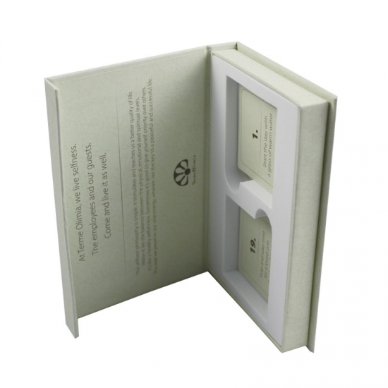 Cajas abatibles personalizadas de color verde con diseño único, equipadas con soporte interior de EVA de alta calidad, adecuadas para diversas colecciones de tarjetas, postales y otros productos.