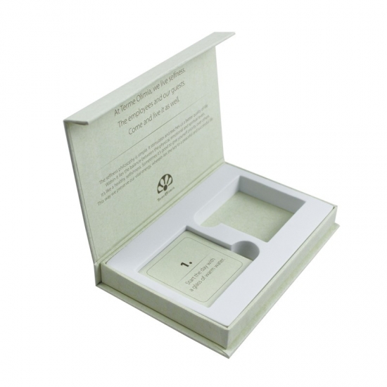 2) Material: Papel artístico laminado C2S de 157 g/m², cartón gris de 1200 g/m², espuma EVA, tarjeta de papel.