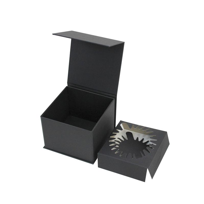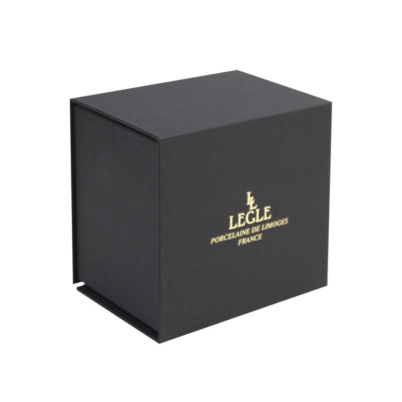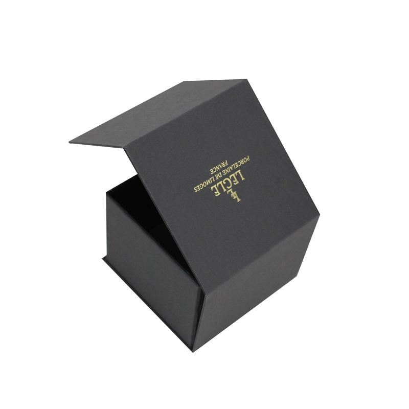 Caja plegable cuadrada de cartón negro con logotipo dorado personalizado