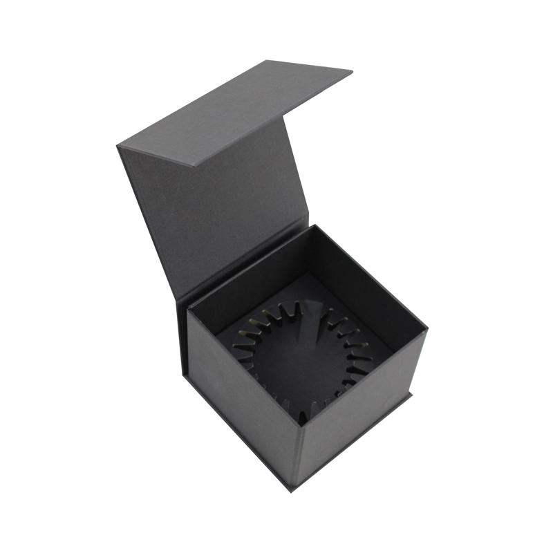 Acabado de la caja: Estampado en caliente con papel dorado para logotipo personalizado en la caja, impresión completamente negra y laminación mate en la bandeja interior.