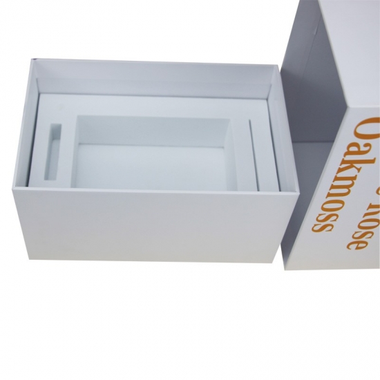 Esta es una caja de base y tapa de cartón para vela con logotipo de papel dorado personalizado hecha con papel de arte C2S de 157 g + tablero gris de 1200 g, dentro de la protección se utiliza espuma EVA que se adaptará al tamaño de los productos.