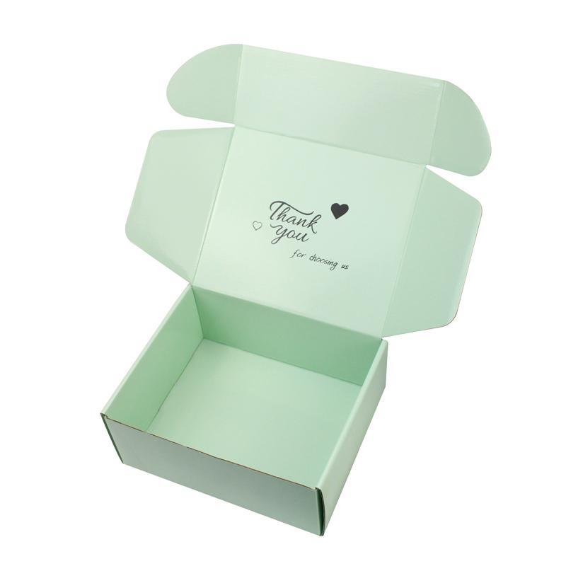 Caja de correo corrugada con flauta E impresa en color verde claro personalizada