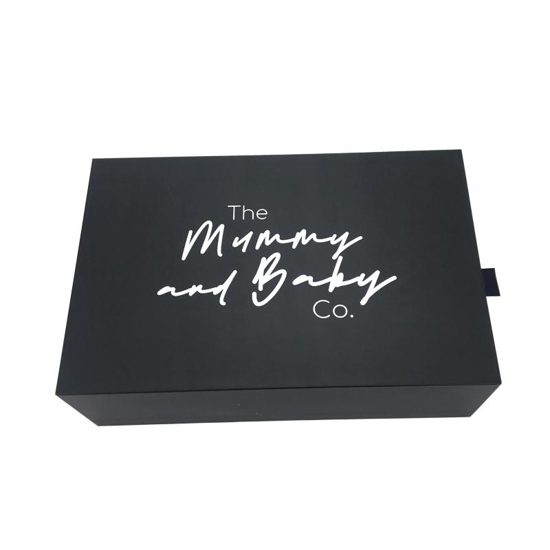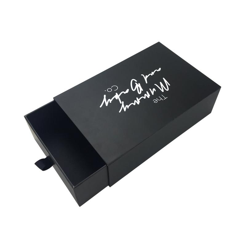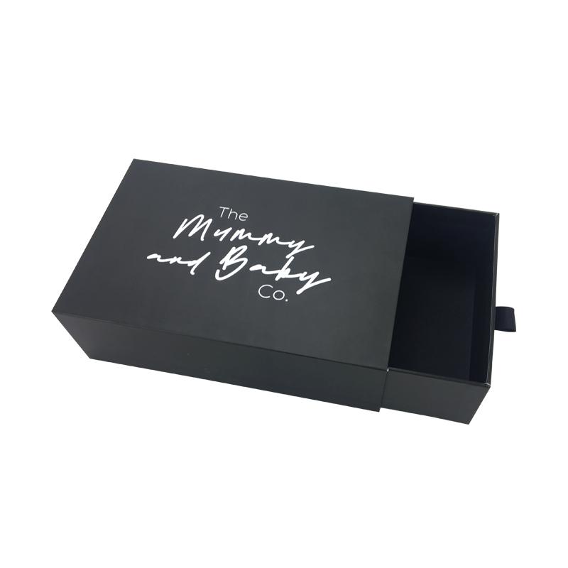 Caja de papel negro con logotipo personalizado para embalaje de cajones deslizantes