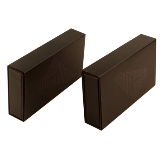 La pequeña caja de regalo con cierre magnético está hecha con papel artístico C2S de 157 g/m² laminado con cartón gris de 1,5 mm, revestimiento UV localizado y laminado mate.