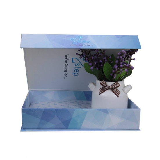 La caja de almacenamiento con forma de libro azul fue hecha con papel de arte C2S de 157 g/m² laminado con soporte de cartón gris de 2 mm personalizado en cualquier tamaño, color y logotipo, el acabado de la superficie fue laminado mate, revestimiento UV localizado, estampado en caliente (color azul), tamaño de relieve 20,1*16,1*4,1 cm