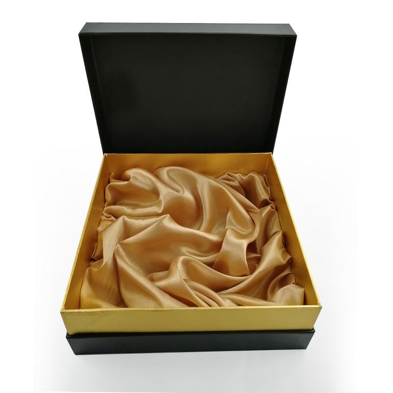 2) Material: Papel artístico C2S de 157 g/m² laminado, cartón gris de 1200 g/m²