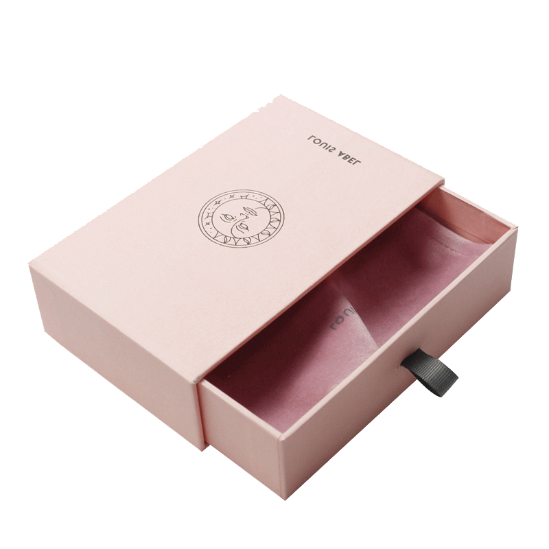 Personalice sus propias cajas de cajones de cartón de moda simples de joyería de color pantone únicas, laminadas mate, estampadas en caliente en color rosa.
