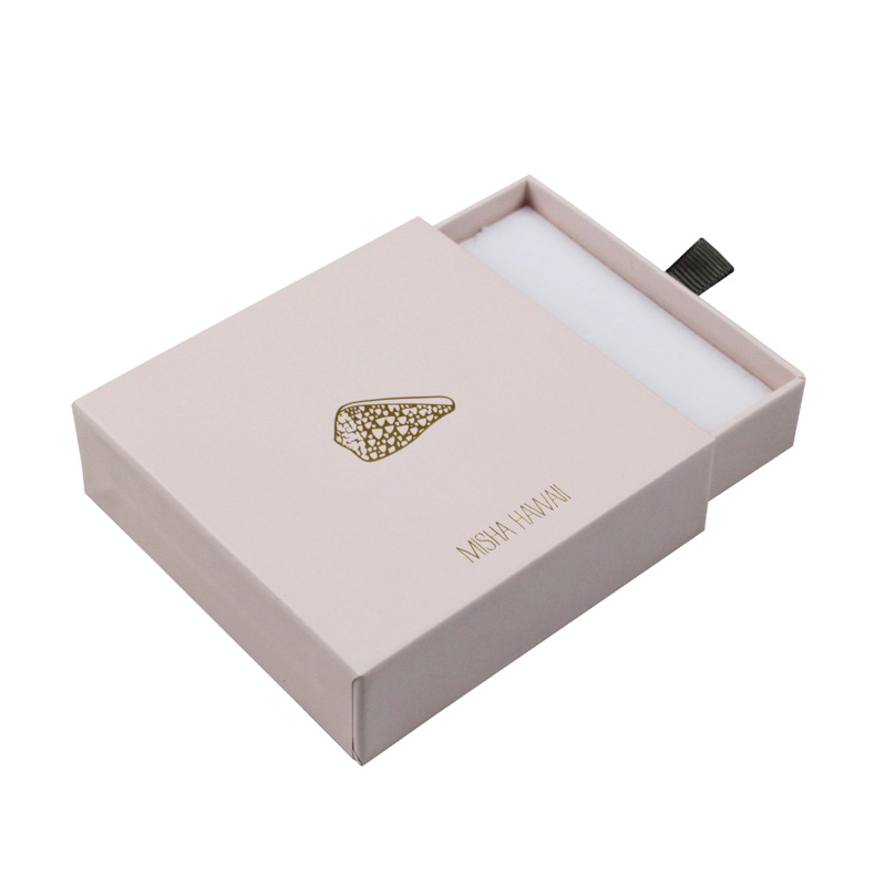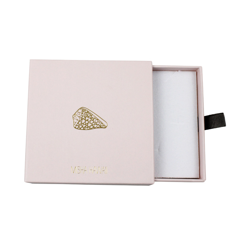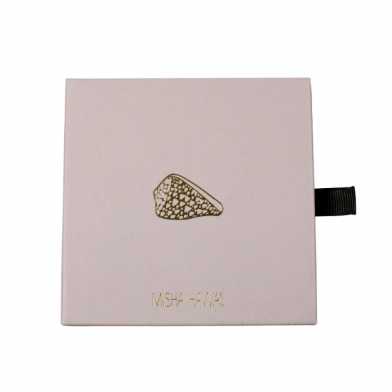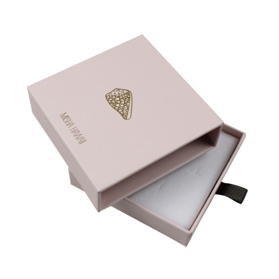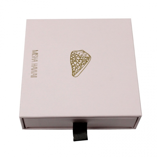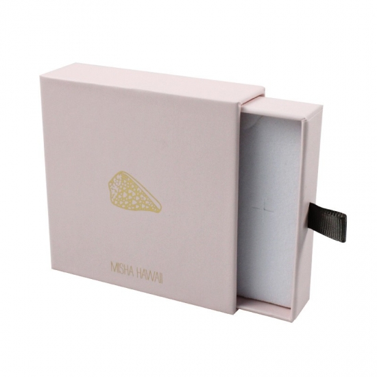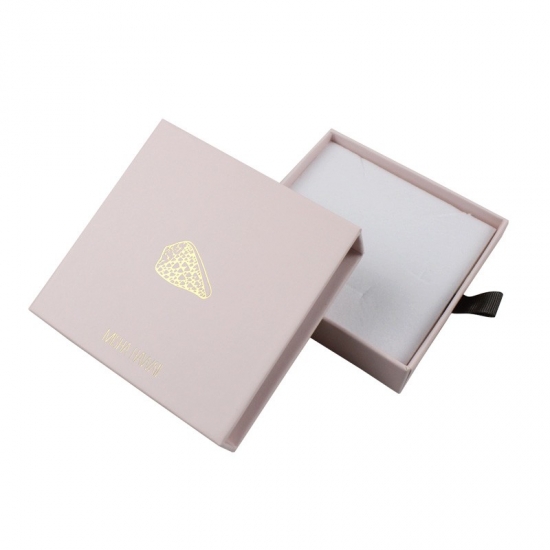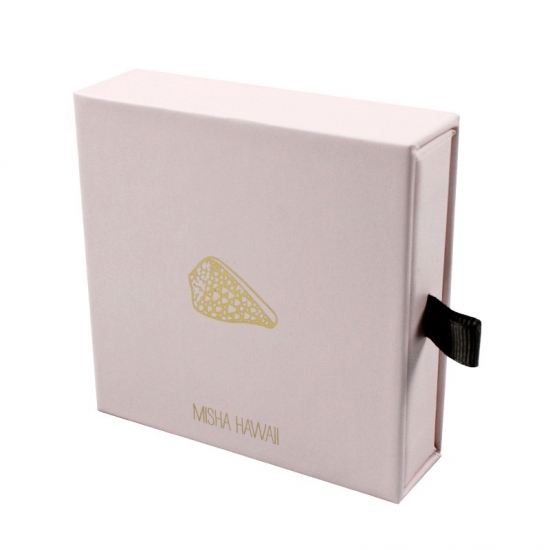 Es un caja de cajón de color rosa con tirador de cinta lo cual hizo por papel artístico C2S de 157 g + cartón gris de 1200 g El logotipo en la parte superior de la caja está estampado en papel de aluminio y hay una cubierta de espuma con un inserto de relleno de terciopelo dentro de la caja.