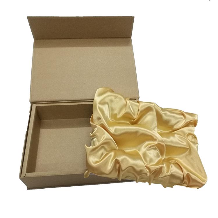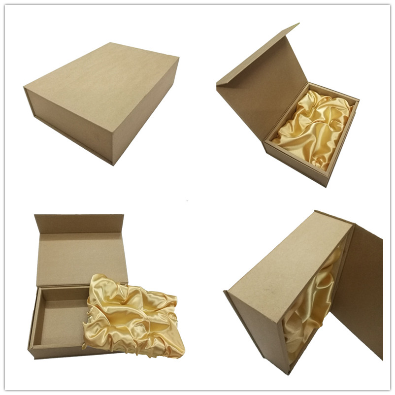 Caja de papel kraft marrón rígida personalizada con inserto de satén