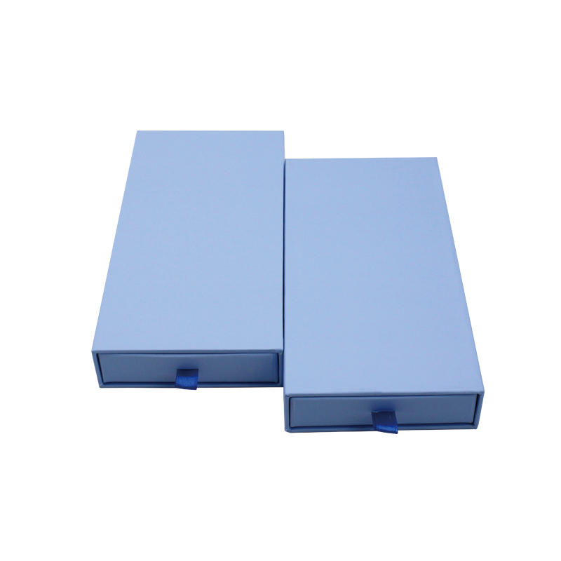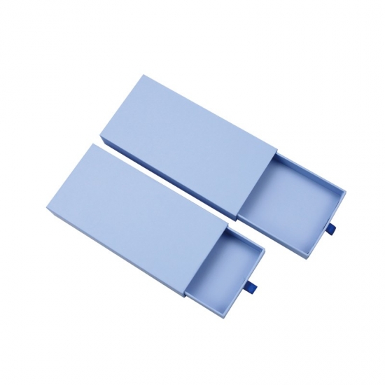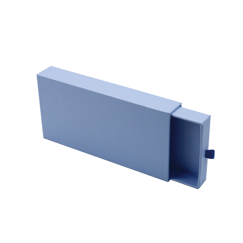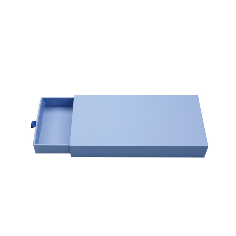 Es un azul sli d cajón ing caja con tirador de cinta lo cual hizo por papel artístico C2S de 157 g + cartón gris de 1200 g ,Toda la caja está llena de impresión monocromática de color azul sin ningún patrón.