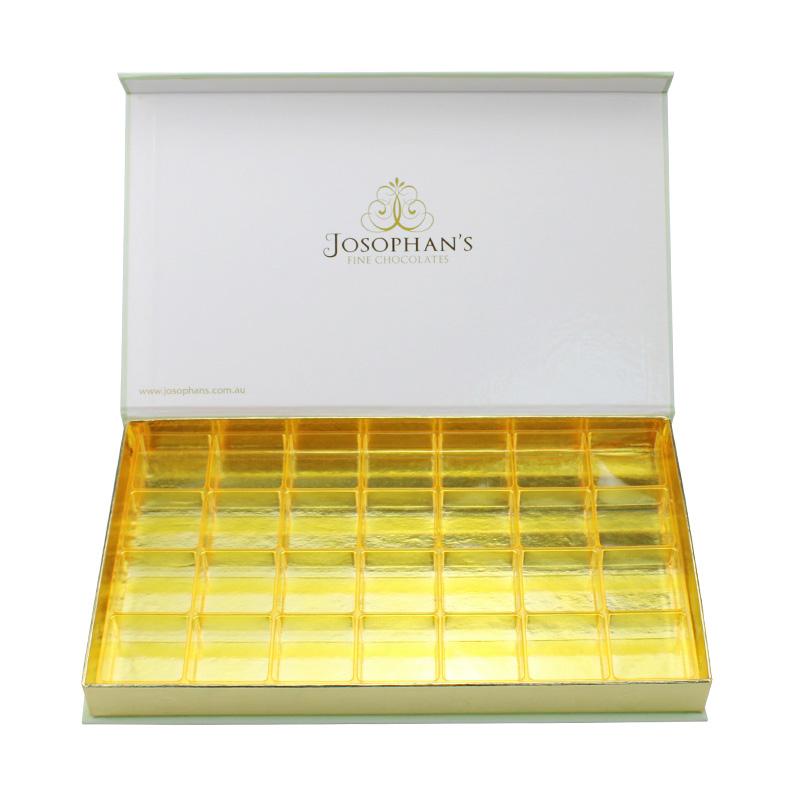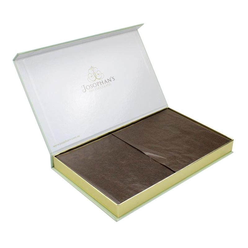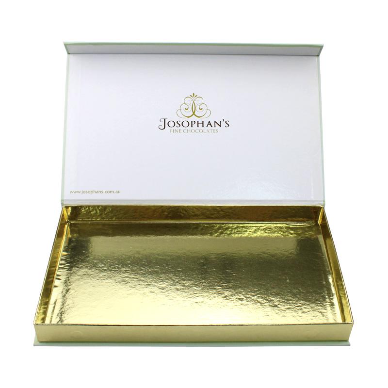 El verde metro caja de embalaje magnética Para chocolate, cuenta con un soporte interior de plástico y papel de copia. El producto, con doble protección, no se daña. Es una excelente caja para envasar chocolate.
