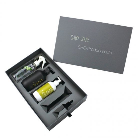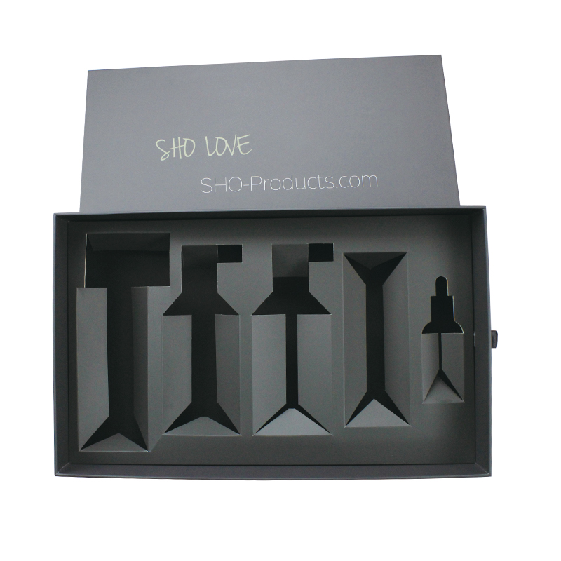 Es un caja de cartón con cajones con tirador de cinta lo cual hizo por papel artístico C2S de 157 g + cartón gris de 1200 g , lleno de impresión en el exterior y el interior de la caja, hay insertos de cartón de papel que se adaptan a la forma personalizada de los productos dentro de la caja.