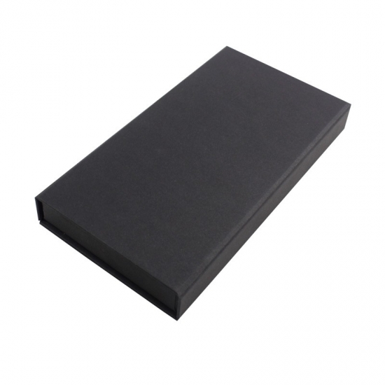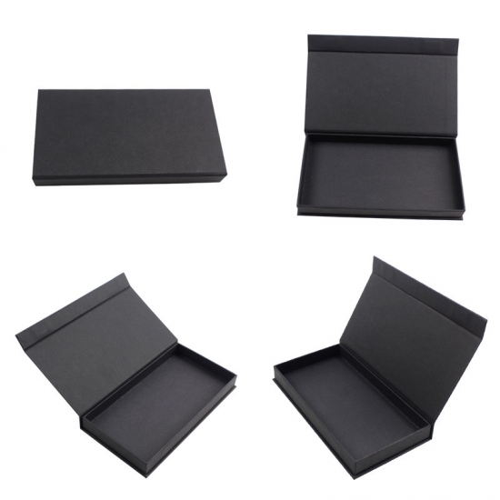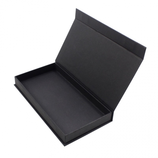 Esta pequeña caja de regalo magnética negra está hecha con papel artístico C2S de 157 g/m² laminado con cartón gris de 1,5 mm. Es un estilo de caja de regalo muy magnético, con impresión en color negro y laminación mate.