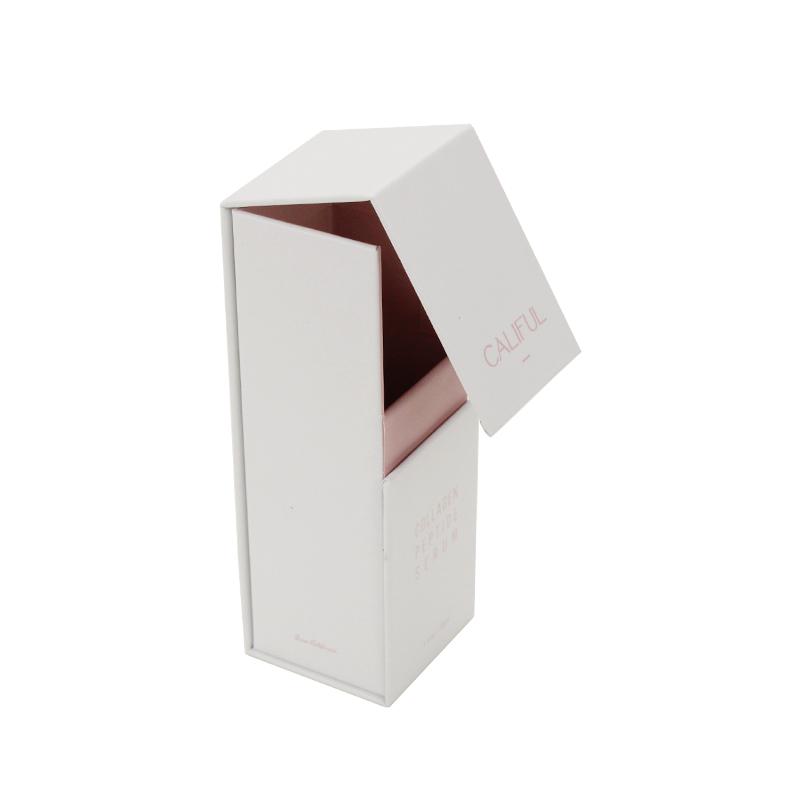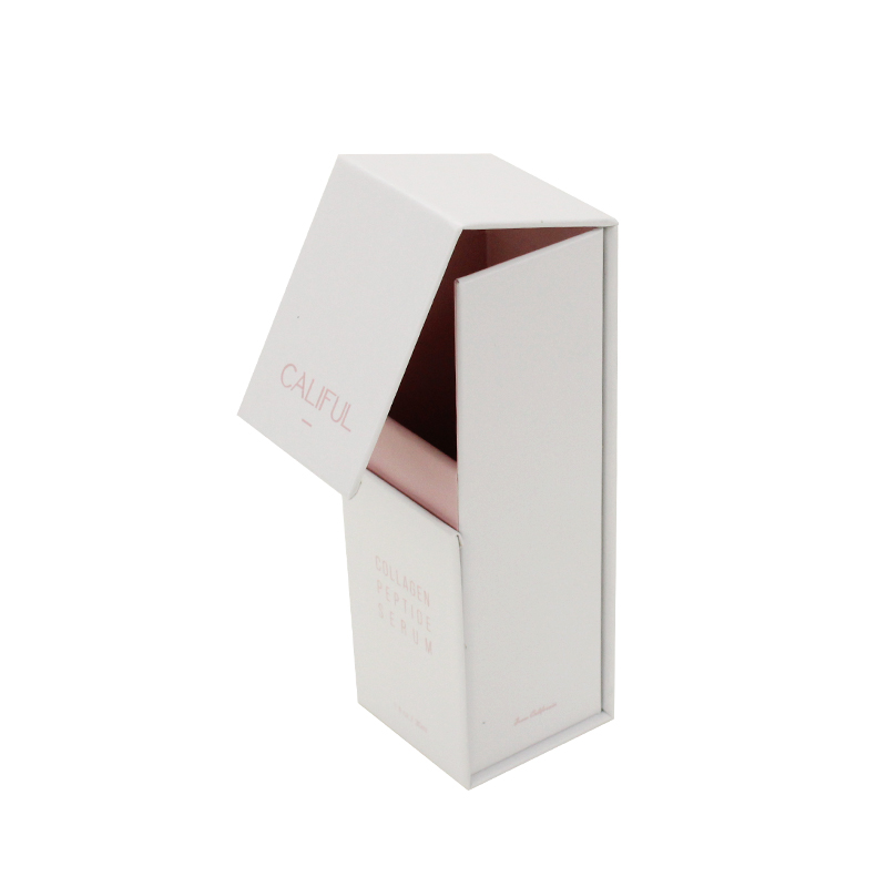 Este es un Pequeño imán de pie de tamaño caja lo cual hizo por papel de arte de 157 g + cartón gris de 1200 g, exterior lleno de blanco mate y montado en el interior de cartón rosa.
