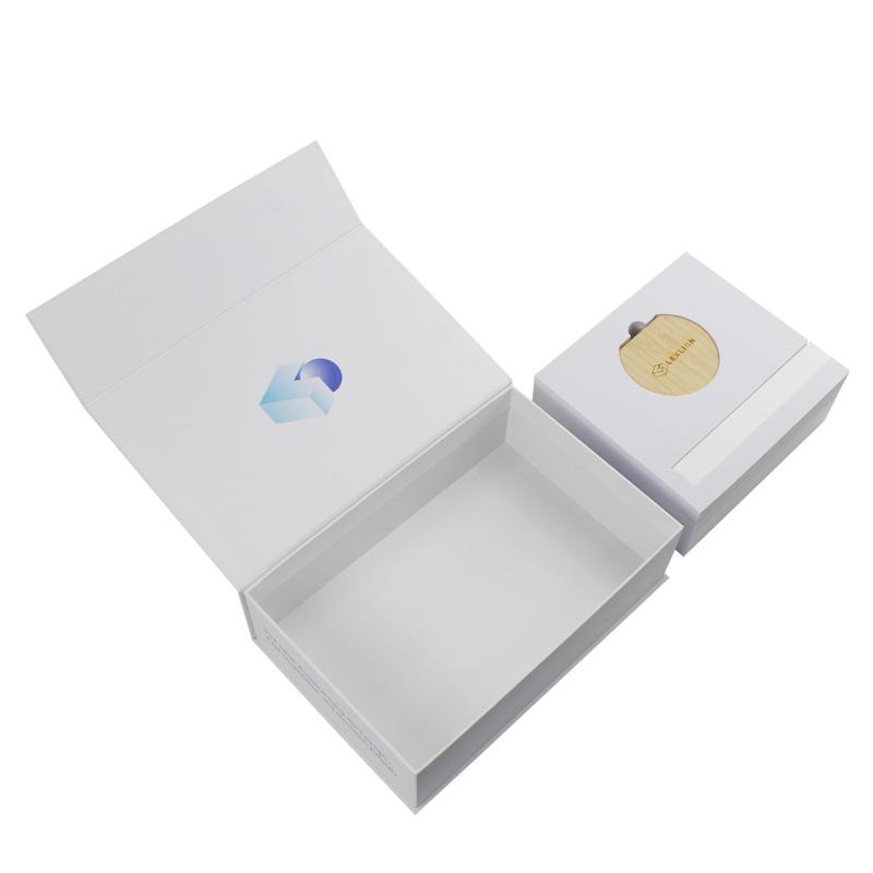 Venta al por mayor personalizada profesional caja blanca con tapa abatible Caja de regalo en forma de libro, reutilizable y ecológica.