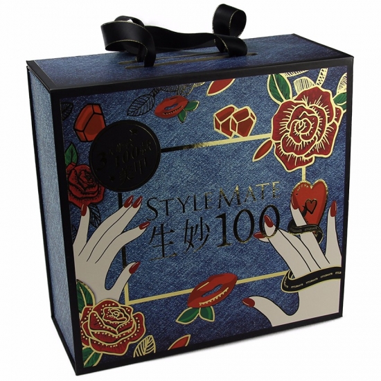 Caja de cartón plegable laminada brillante de alta calidad, fabricada con papel de arte recubierto + cartón gris con cierre magnético. Generalmente se utiliza para empaquetar zapatos, ropa y otros productos de consumo.