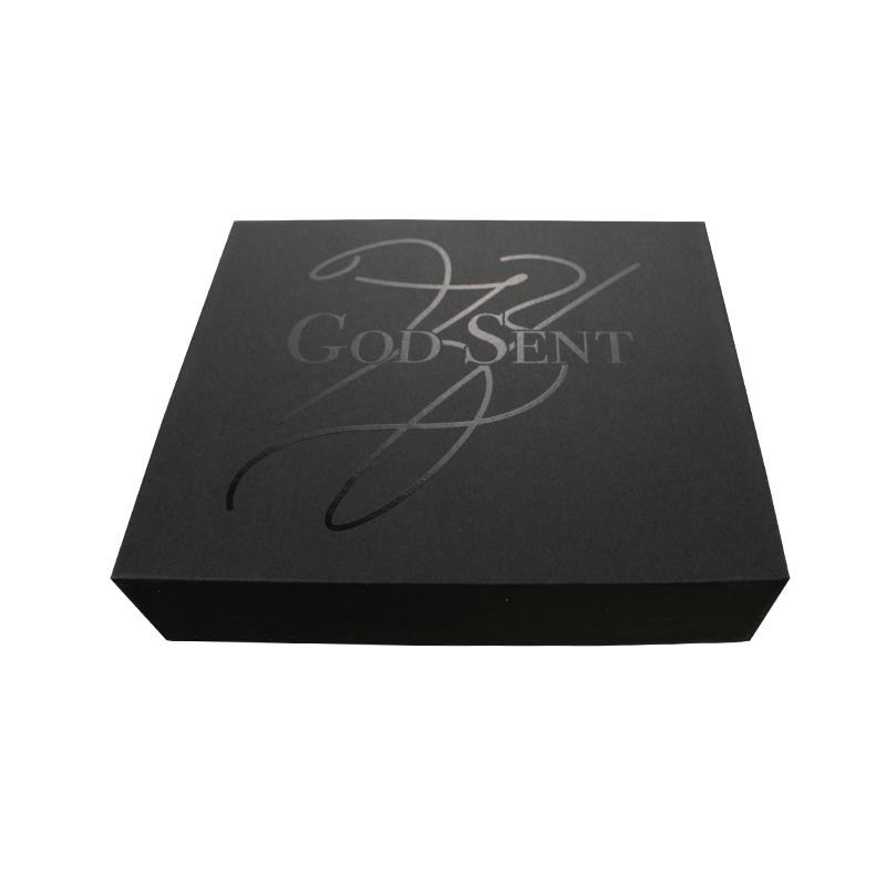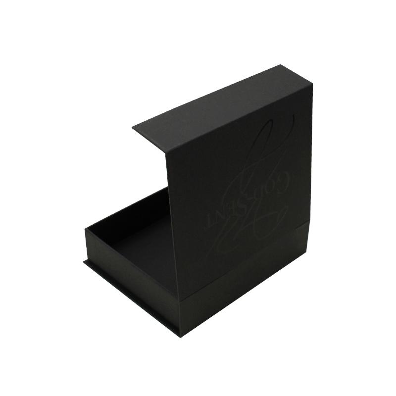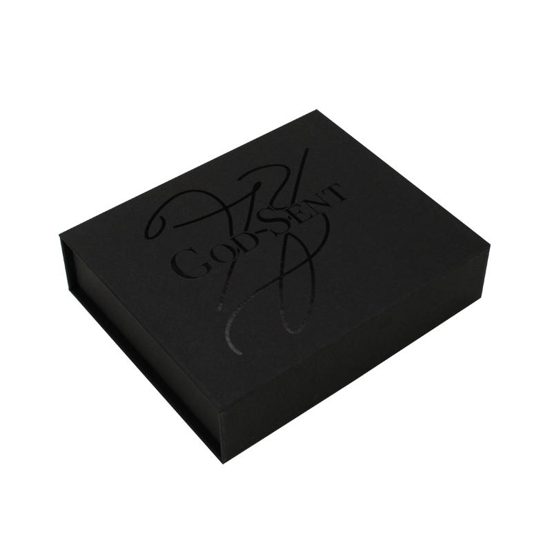 Este es un negro de alta calidad. caja de regalo plegable con un logotipo personalizado