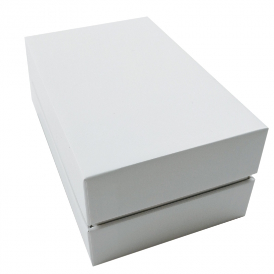 Esta caja mide 28 x 16 x 10 cm y cuenta con un inserto de EVA protegido. El laminado mate protege la tinta y la impresión del aire. Es muy duradera.