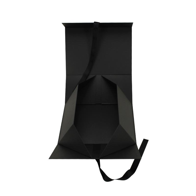 Cajas de zapatos de cartón plegables de lujo negras con cinta