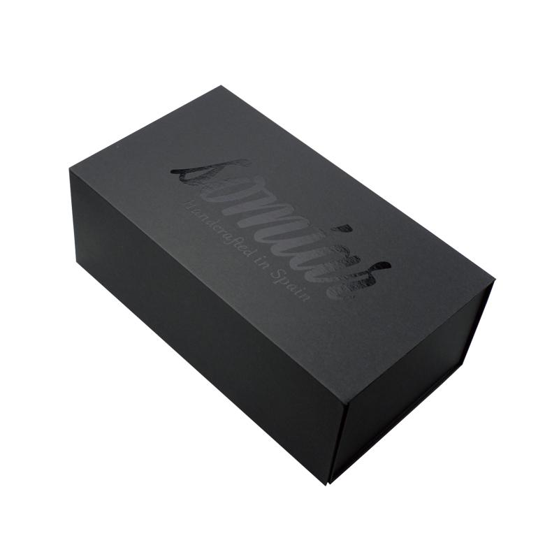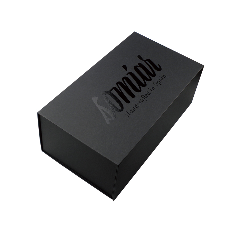 Este es un dispositivo portátil y de alta gama. cajas de papel magnéticas negras plegables hecho con papel especial negro + cartón gris de 2 mm de espesor, logotipo en gran tamaño y revestimiento UV en la parte superior de la tapa sin impresión.