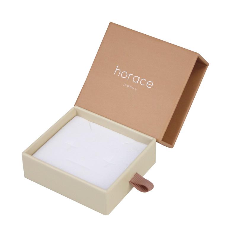 Cajas de cajones deslizantes de tamaño pequeño, cuadradas y personalizadas con forro de espuma de PE de terciopelo, impresas en color Pantone con logotipo blanco.