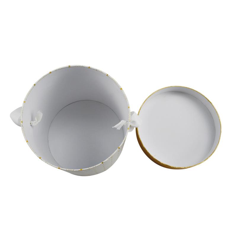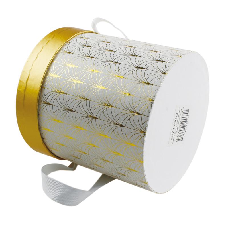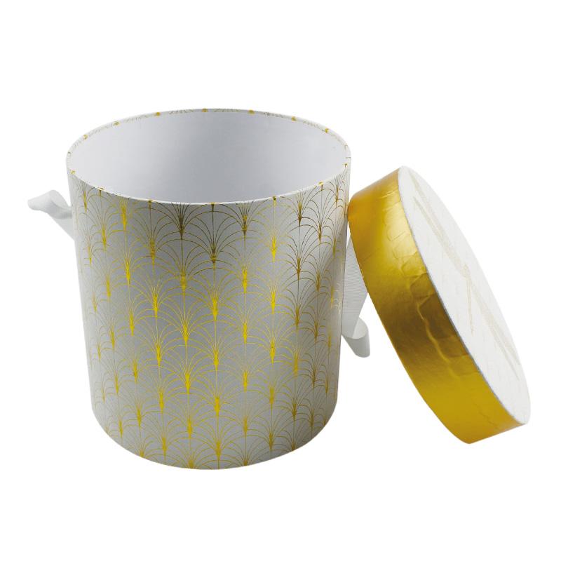 Caja de regalo redonda grande con diseño decorativo de lámina dorada y tapa