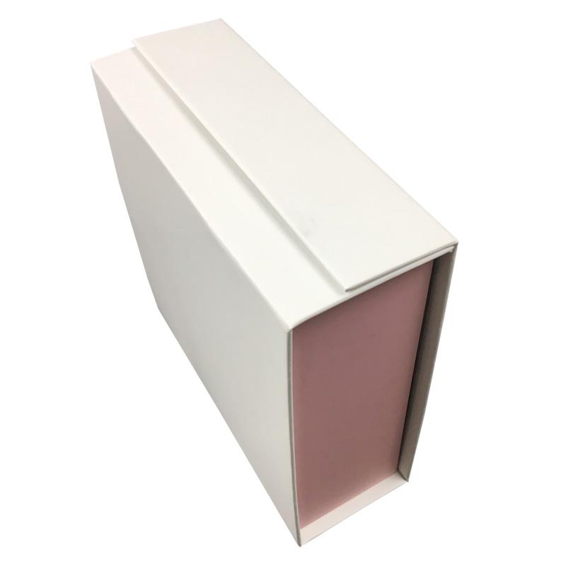 Elegante caja de regalo rígida para ropa con estampado en color blanco.