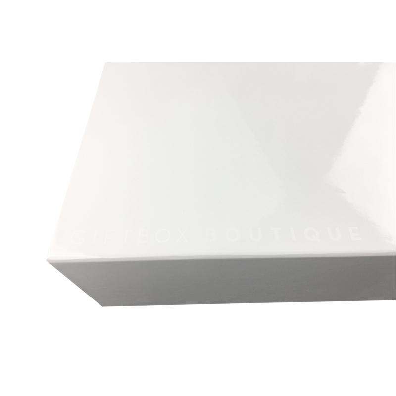 Este es un grande cajas planas blancas Con laminado brillante. Adecuado para caja plegable blanca para empaquetar bolsos.