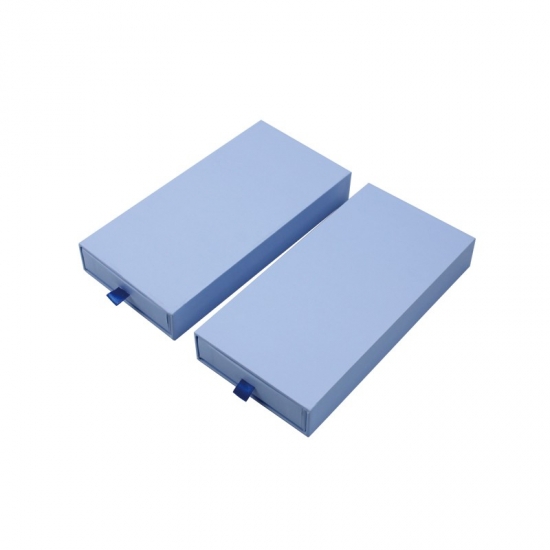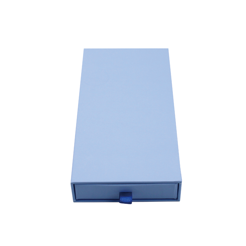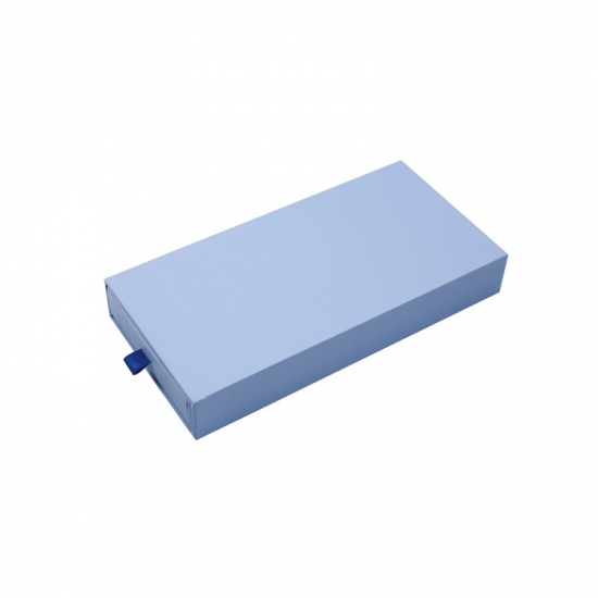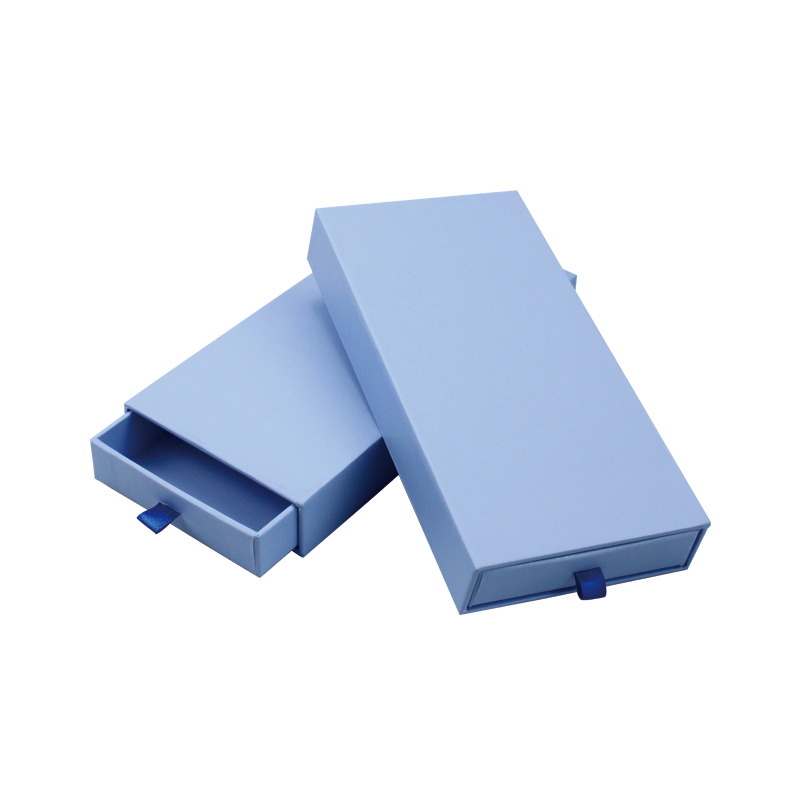 Es un color azul mate. caja de cajón azul sencilla lo cual hizo por papel artístico C2S de 157 g + cartón gris de 1200 g , lleno de impresión azul en el exterior y el interior sin ningún logotipo, acabado de superficie mate.