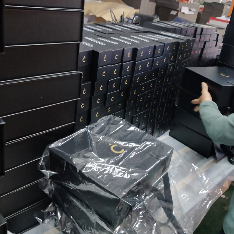 Según sus requisitos, utilizaremos el estampado y relieve del logotipo en lámina dorada para que brille e impresione a los clientes. Tras finalizar el diseño de la plantilla de la caja de regalo magnética, comenzamos a transformar el diseño abstracto en un producto concreto. Al ver nuestras muestras, quedó satisfecha de que hubiéramos cumplido con sus requisitos de embalaje, confirmó el pedido rápidamente y comenzó la producción.