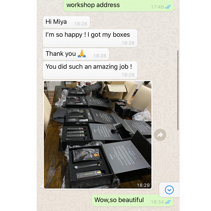 Señora Hall , un cliente de Australia , Tiene su propia marca independiente. Es un gran honor conocerla en su sitio web. Tras saber que está a punto de iniciar un nuevo proyecto sobre productos de la serie Coffee, necesita un producto de alta gama. caja de regalo magnética y un impresionante cajas de regalo magnéticas con cinta