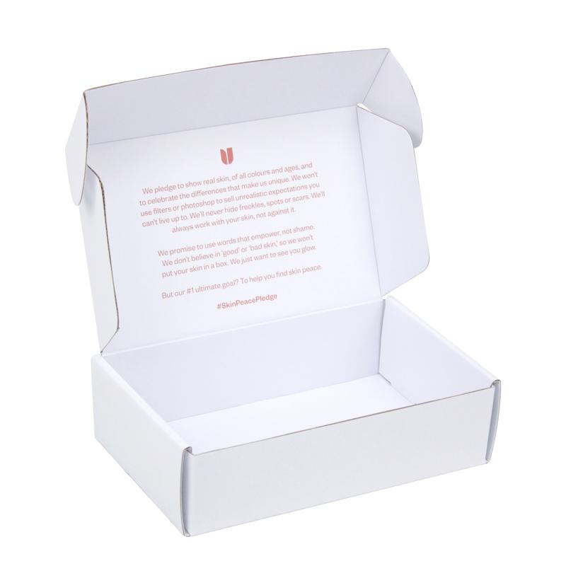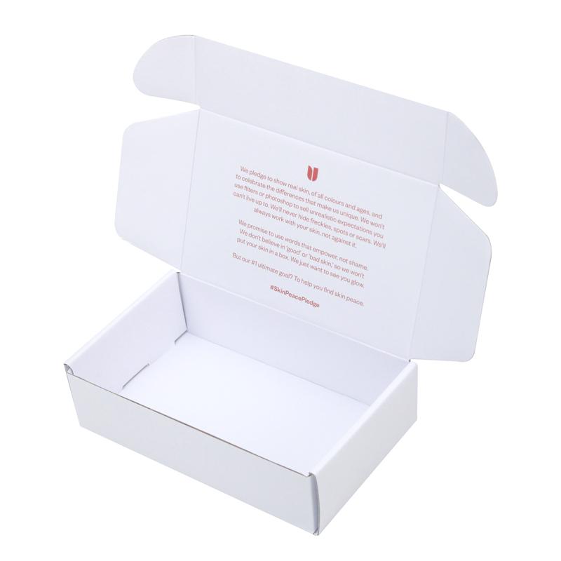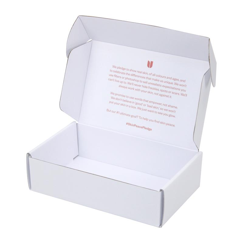 Material de la caja: CCNB de 300 g/m² montado con flauta KE resistente tanto en el exterior como en el interior