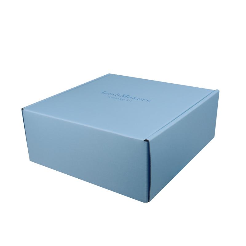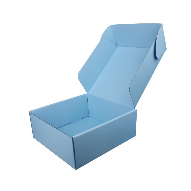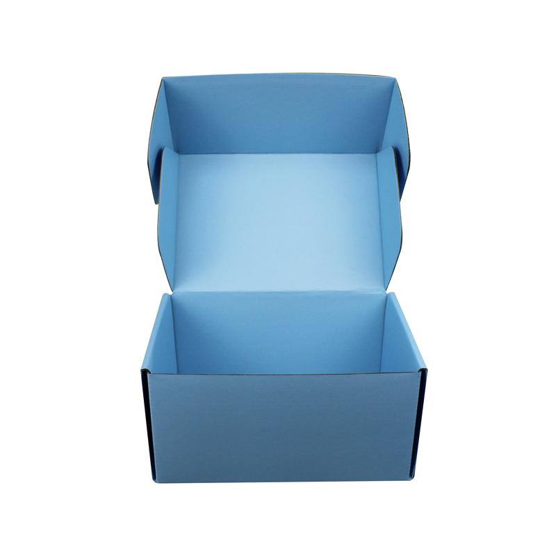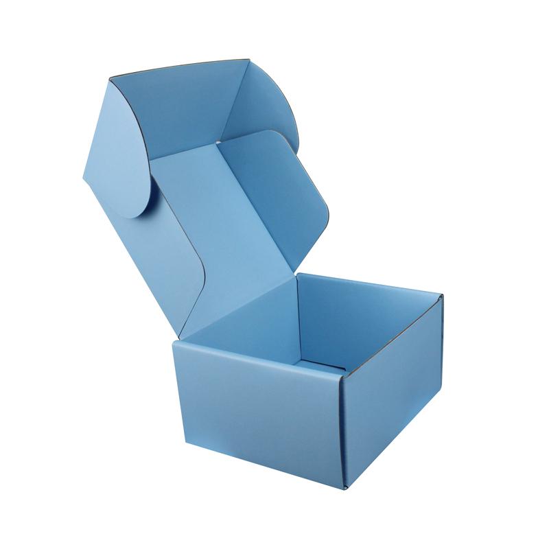 Cajas de envío planas de cartón corrugado con logotipo en relieve personalizado en color azul