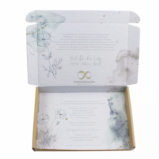 Este es un cajas de correo personalizadas que fue fabricado por BE flute+ 350 g de CCNB ,Lleno de un patrón de diseño único y elegante impreso en el interior de la caja y en el exterior en color kraft marrón.