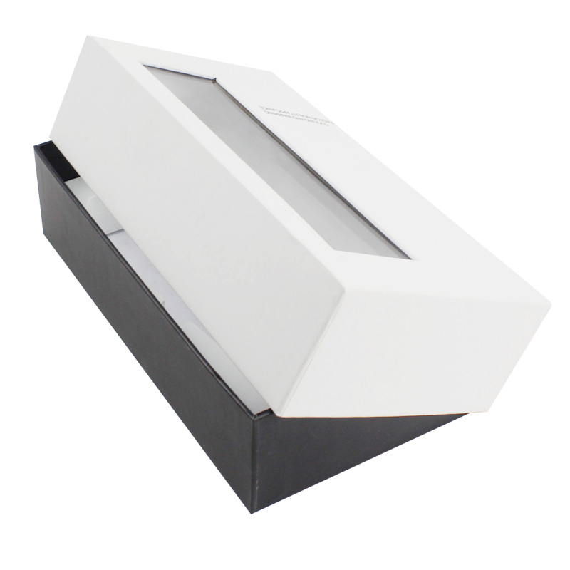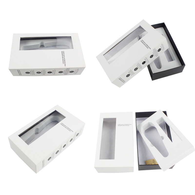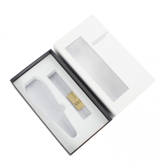 Este es un Tapa y base caja lo cual hizo por papel de arte C2S de 157 g + tablero gris de 1200 g, tapa con ventana de PVC transparente para mostrar los productos en el interior, el interior de la caja tiene un inserto de relleno de EVA blanco con forma personalizada.