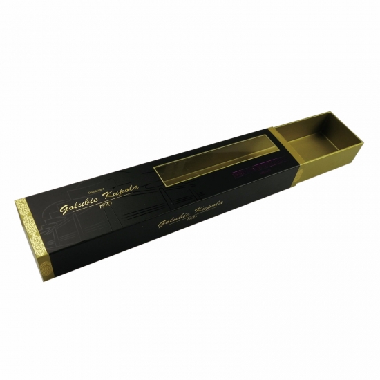 Elegante caja de cartón con cajones deslizantes, hecha de papel gofrado o cartón duro. Se puede personalizar con diversos tipos de papel para guardar regalos.