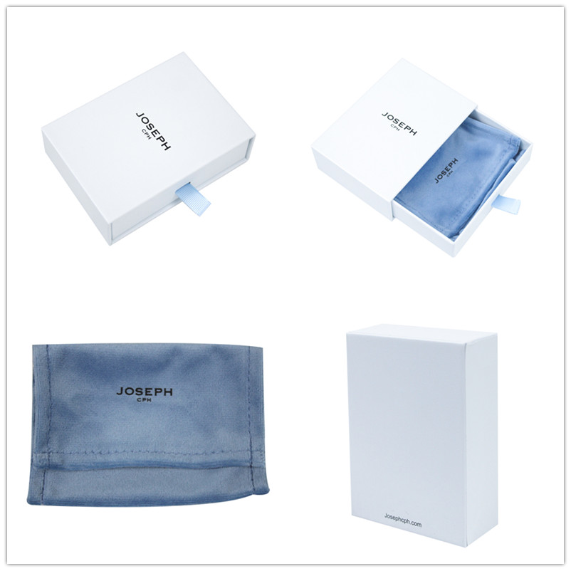 Este es un joyero de papel estilo cajón hecho a medida con bolsa de microfibra, podemos hacerlo en diferentes texturas de papel y colores, el logotipo del cliente se puede imprimir / estampar en caliente / grabar en relieve / estampar en relieve en el joyero o la bolsa
